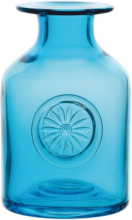 With a unique raised flower decoration on the front a Flower Vase Bottle can display a beautiful bouquet of flowers a few single stems or is a feature on its own. Dartington Flower Bottle Daisy Bottle Turquoise 8400 The Daisy Flower Bottle is made with a cool turquoise glass and finished with a beautiful daisy illustration. DaisyTurquoise Medium Flower Bottle.