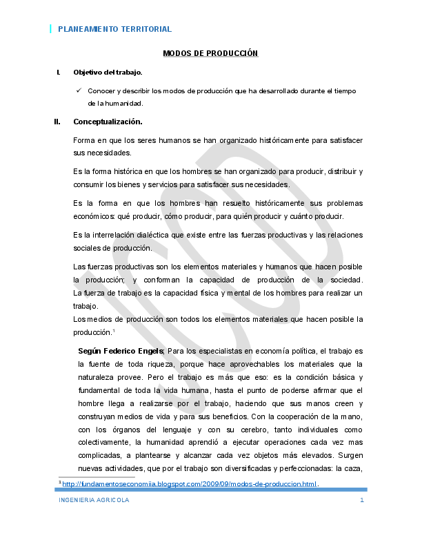 La obediencia se presta a cambio de proteccin. El modo de produccin feudal fue uno de los modos de organizacin de la produccin que existen en la historia. El modo de produccin feudal se convirti en el modo agrcola de la Edad Media.