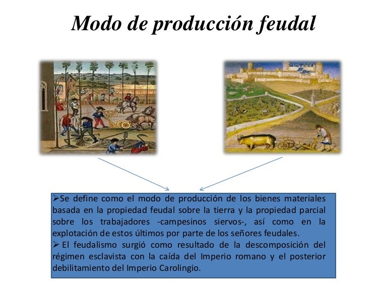 Explicacin del modo de produccin en la etapa del Feudalismo modo de produccin feudal el feudalismo fue el modo de produccin de la edad media es su. Estuvo caracterizado por el sistema de vasallaje y es considerado por muchos como la Edad Oscura debido a las sangrientas guerras las epidemias y. Ha existido en casi todos los pases Clases principales Las clases principales de la sociedad feudal son las constituidas por los seores feudales y por los campesinos.